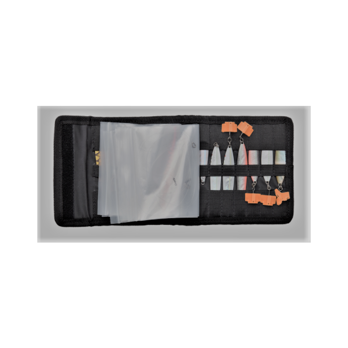 Praktisk mappe til opbevaring af tilriggede og løse gennemløbere . Den er fremstillet i blødt, slidstærkt 600Denier materiale, med velcrolukning. Der er 8 plastic lommer, med velcro montage, som kan tages ud. Derudover er der også 7 rum på hver side, til